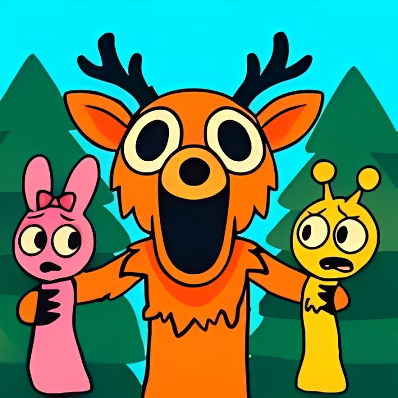 99 Nights in the Forest: Sprunki Mod has exploded in popularity thanks to its strange, funny, yet high-tension survival concept. You transform into quirky Sprunki characters and sprint through a gloomy forest while a giant carnivorous deer chases you down. Trees, rocks, shadows and bad timing can ruin you instantly, your mission is deceptively simple: survive longer than anyone else.