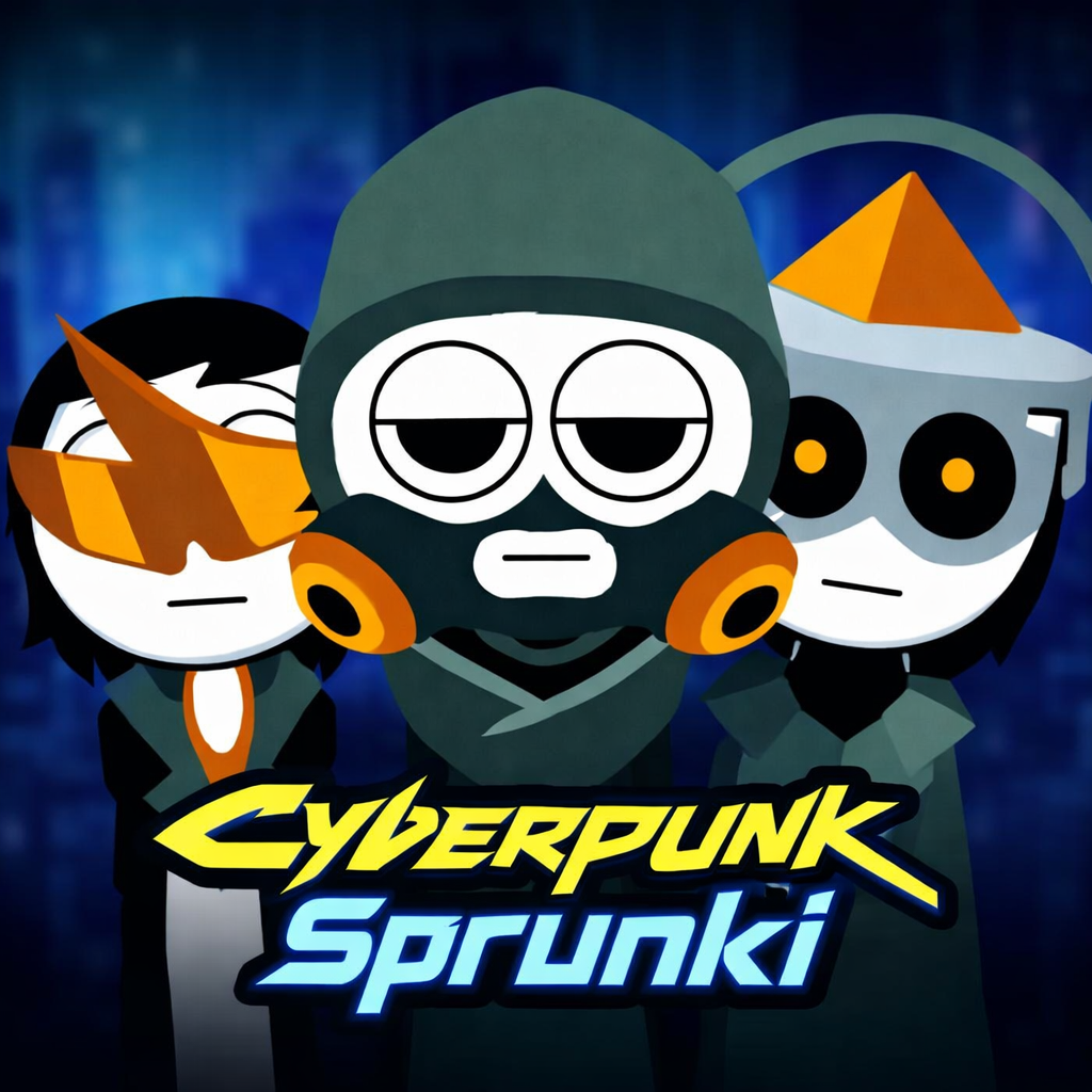 Cyberpunk Sprunki lets players create futuristic music by combining neon-lit characters, electronic beats, synths and vocals in a visually cyberpunk world.